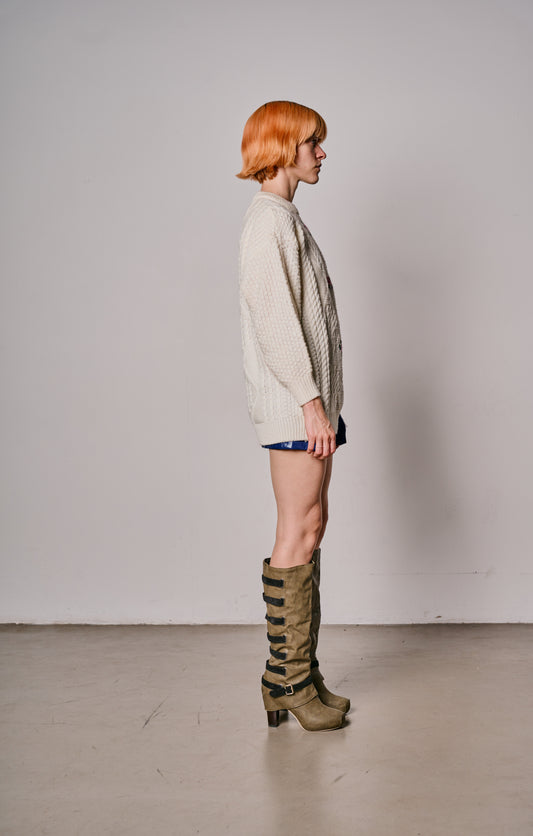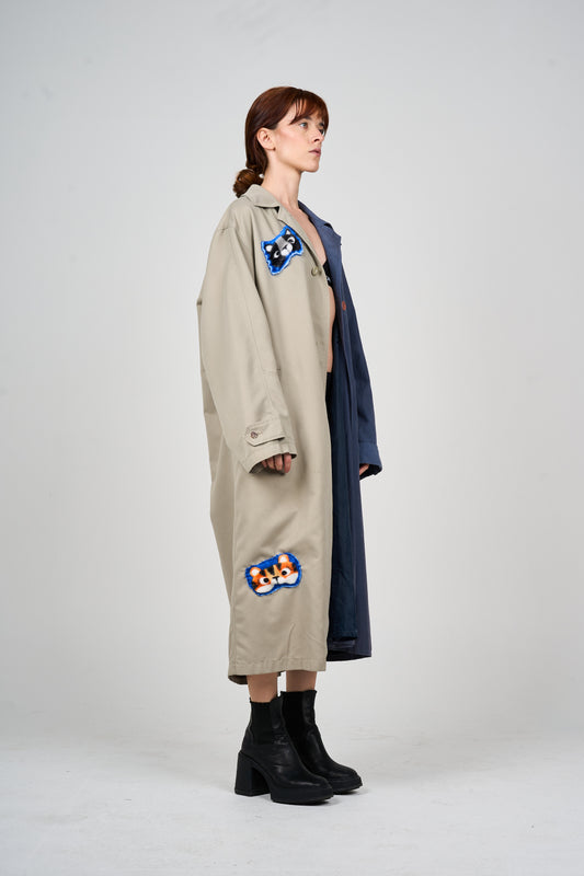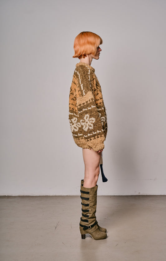 4-In-1 Maneki-Neko Punched-Holes Sweatshirt In Orange