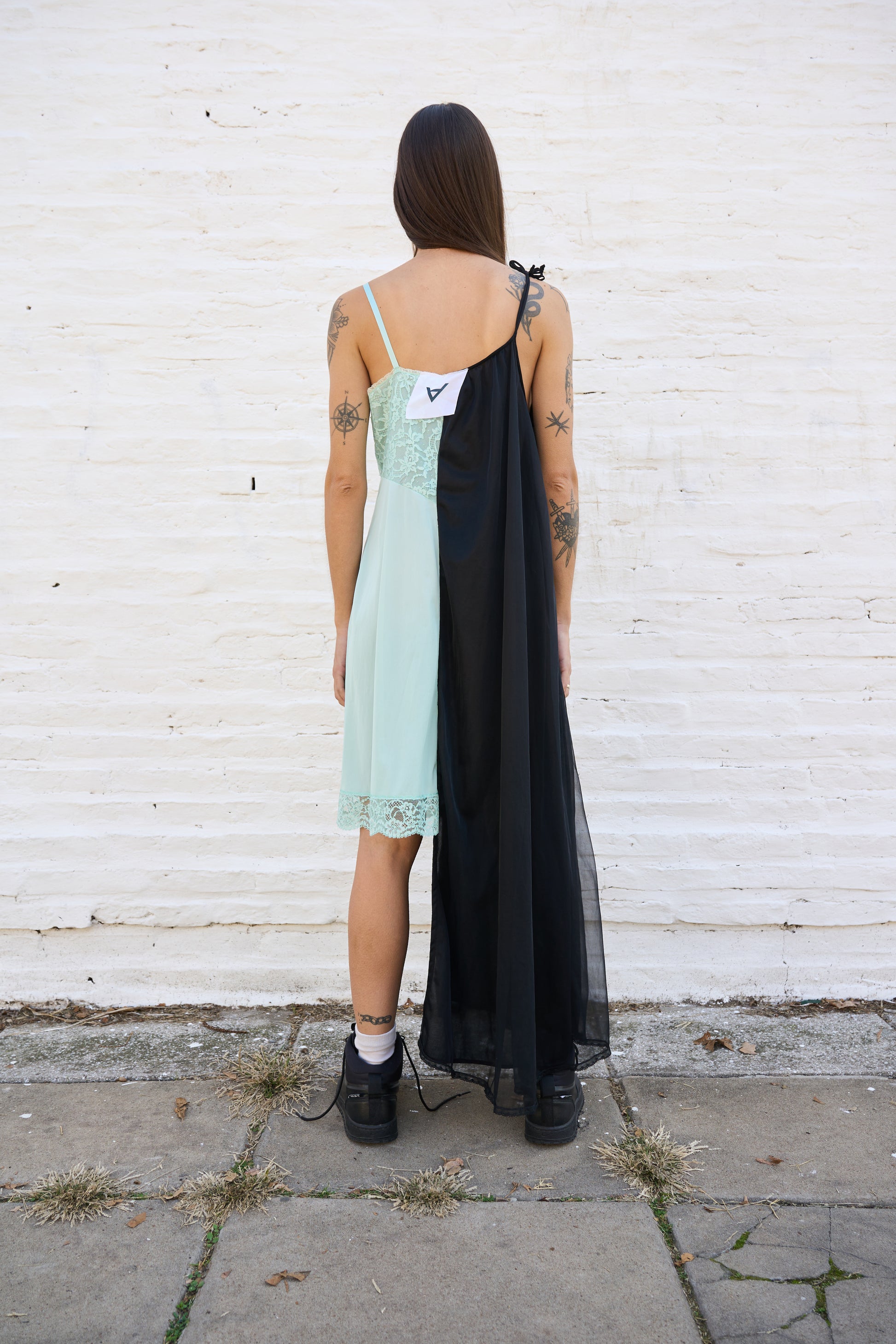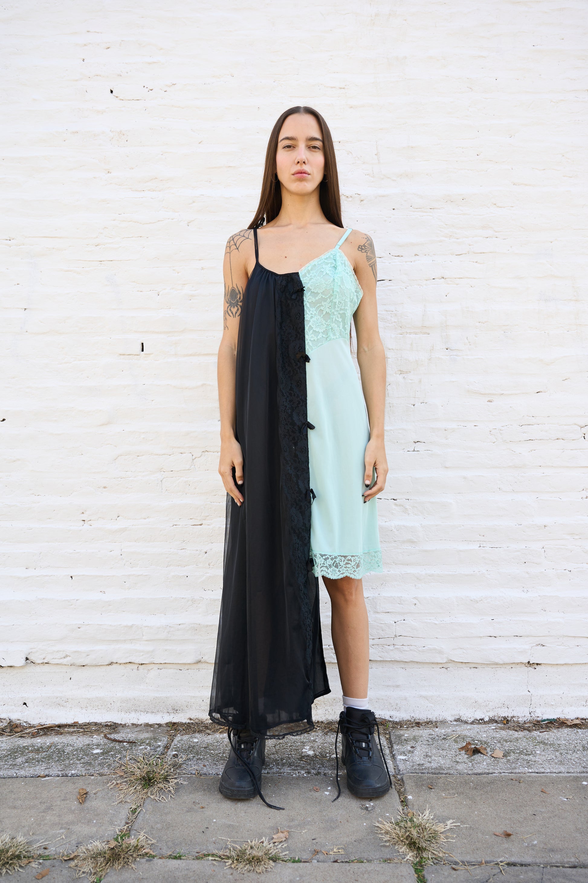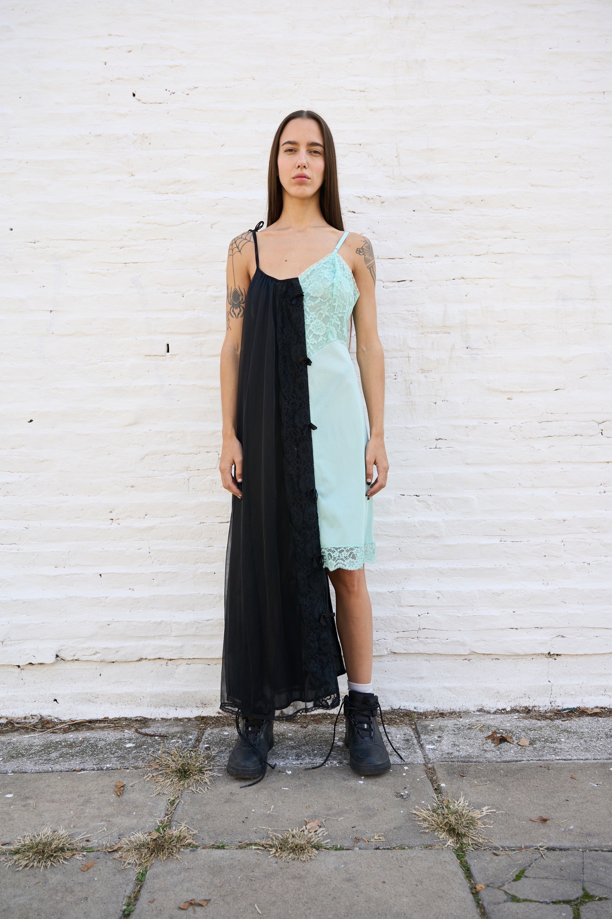 Introducing the Alenkie Upcycled Dress! This stunning dress is a unique one-of-a-kind piece of wearable art made from two different vintage dresses. This dress is transformed into this beautiful and sustainable creation, providing you with not only a stylish but also an environmentally conscious addition to your wardrobe.