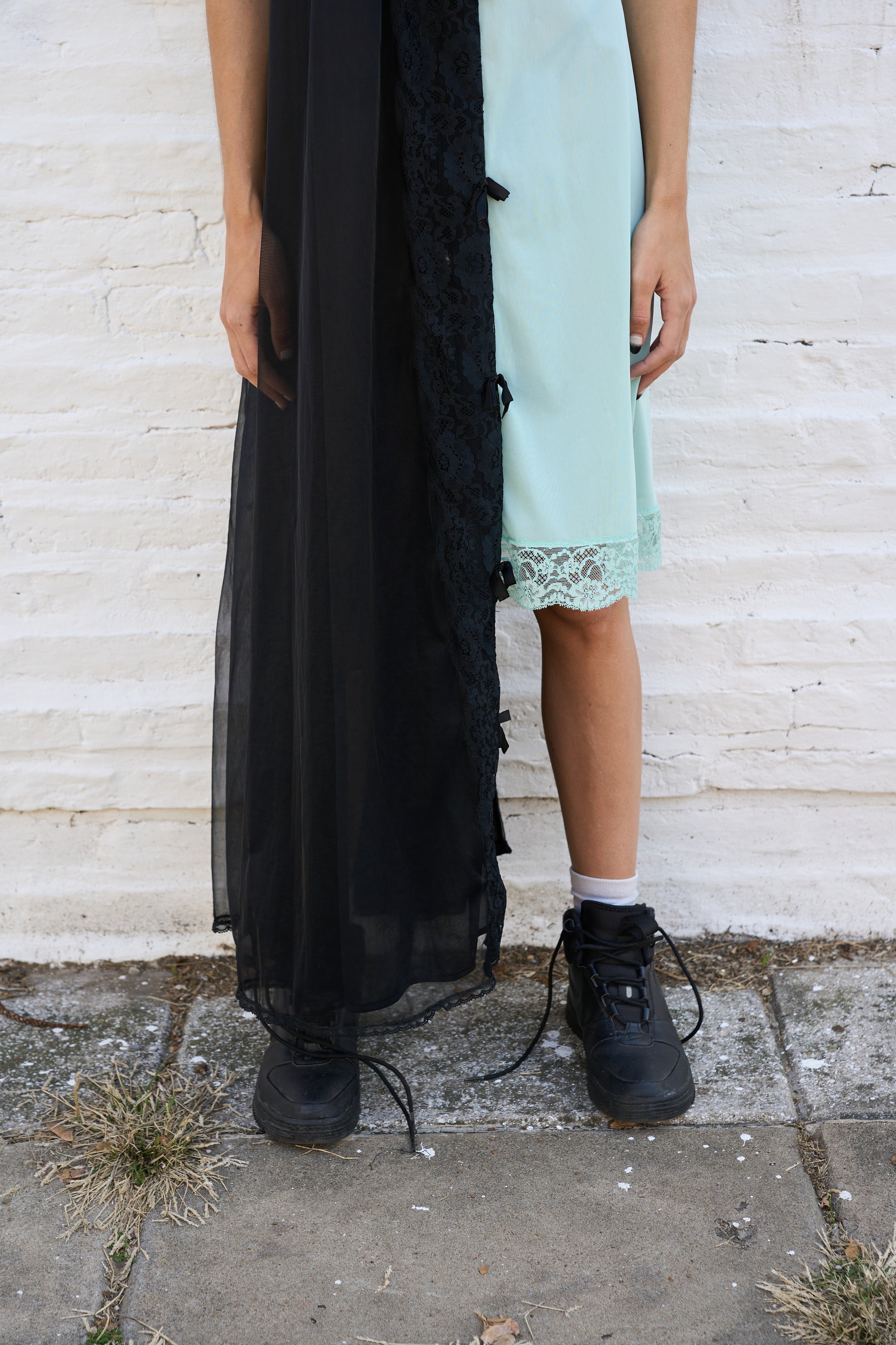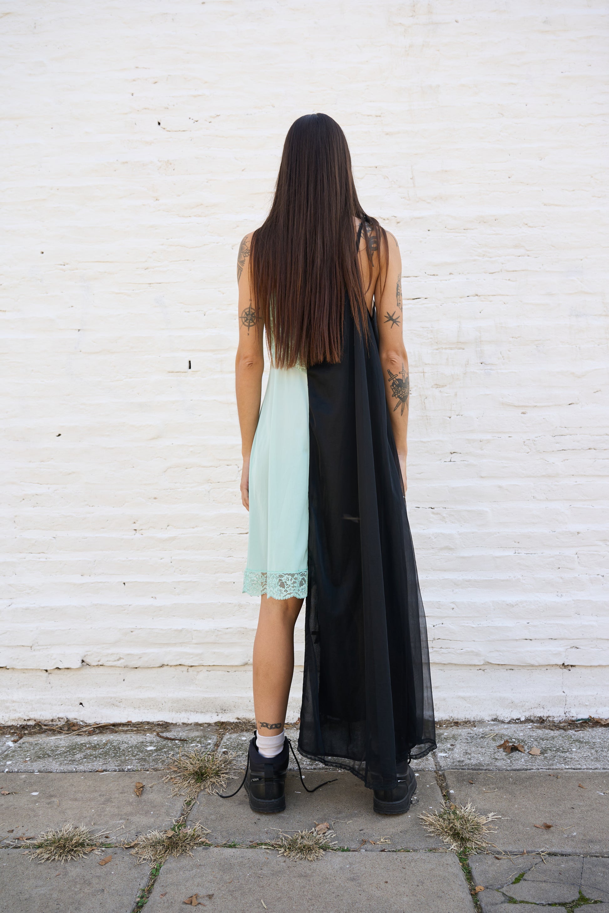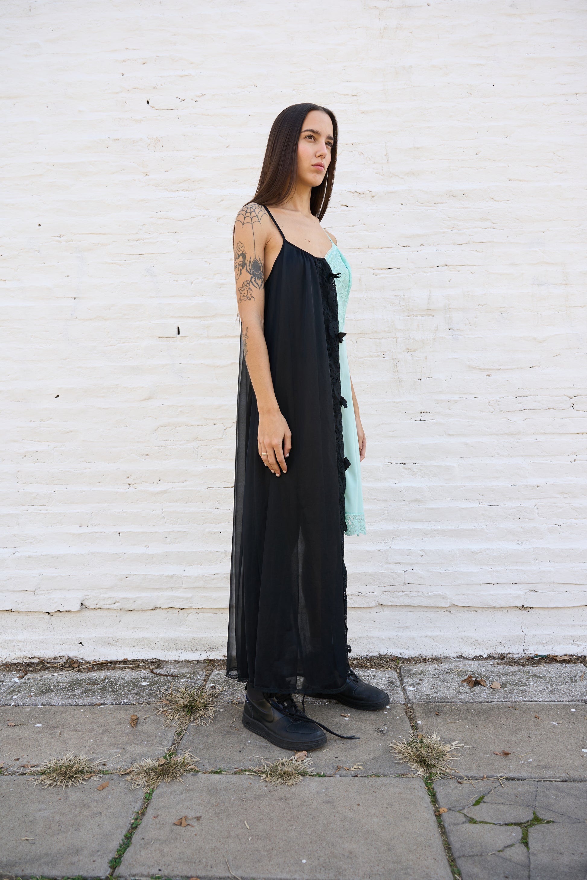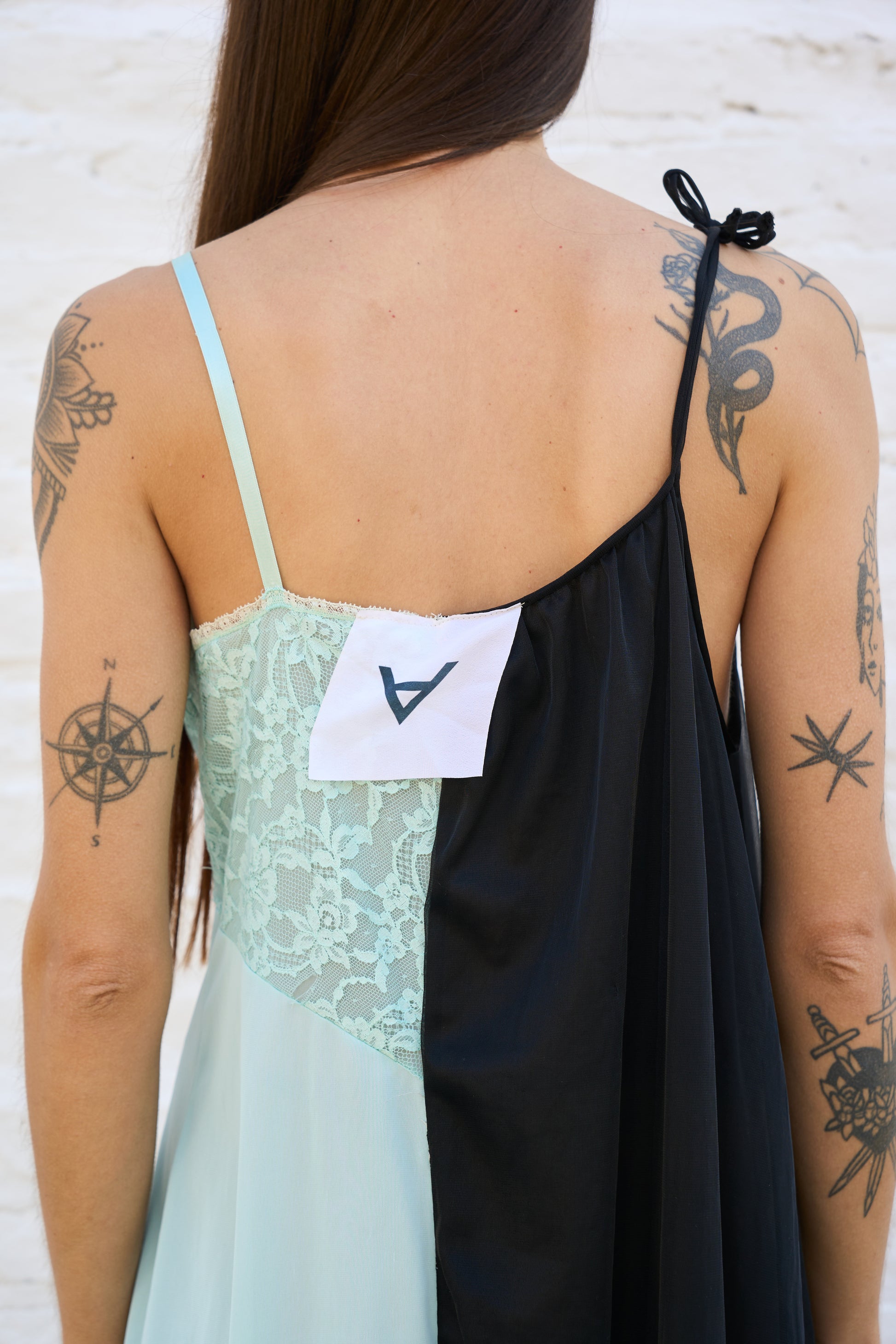 Introducing the Alenkie Upcycled Dress! This stunning dress is a unique one-of-a-kind piece of wearable art made from two different vintage dresses. This dress is transformed into this beautiful and sustainable creation, providing you with not only a stylish but also an environmentally conscious addition to your wardrobe.