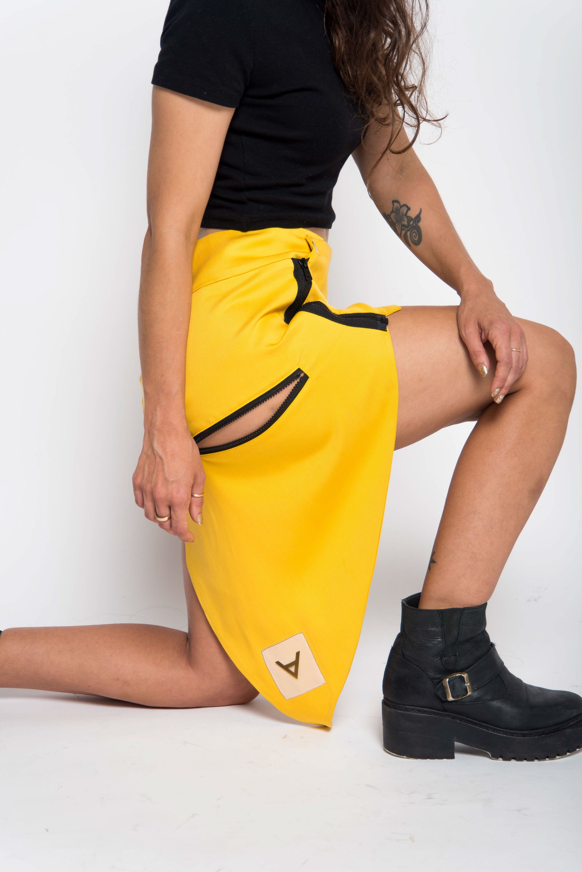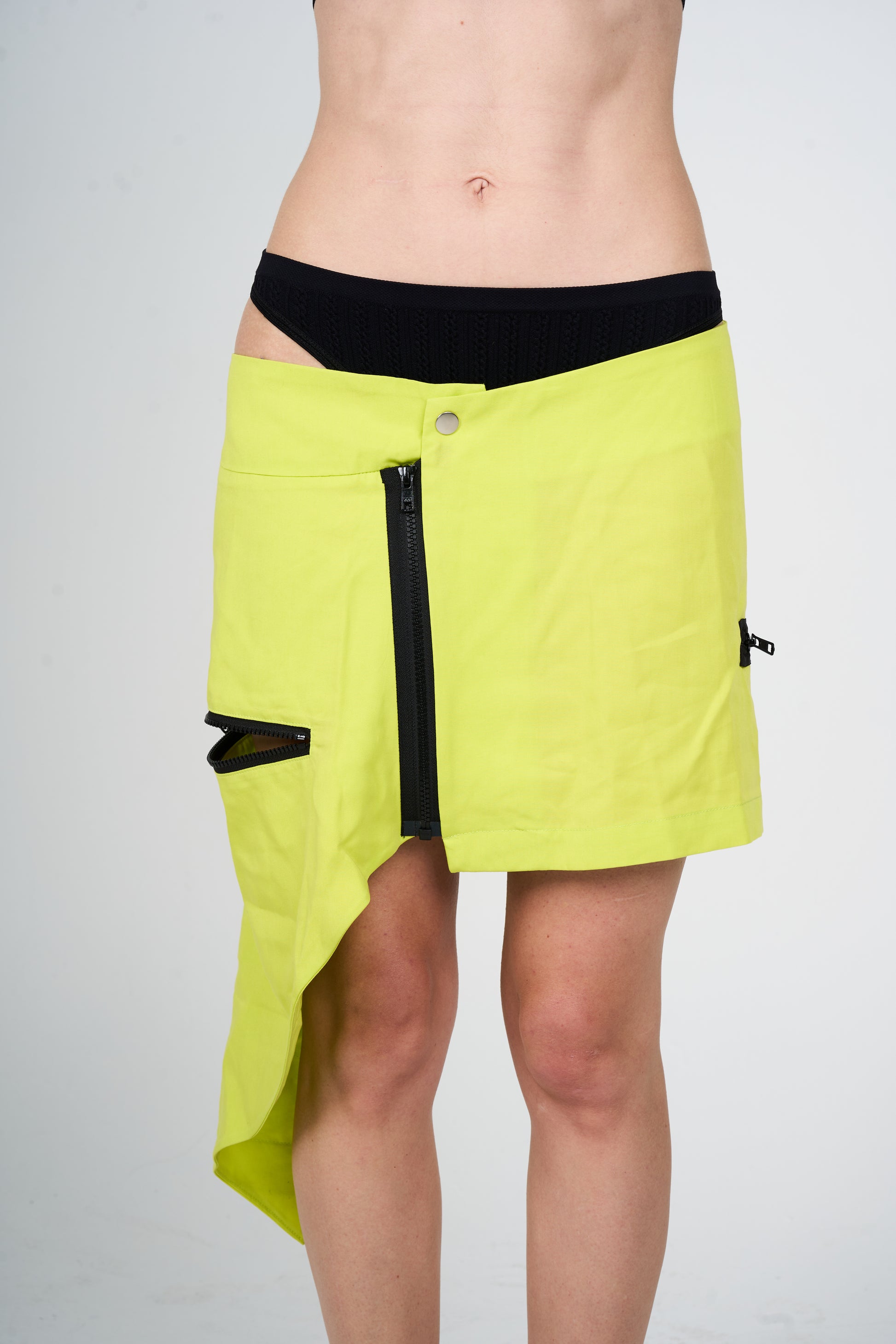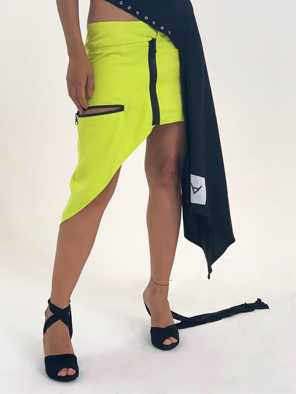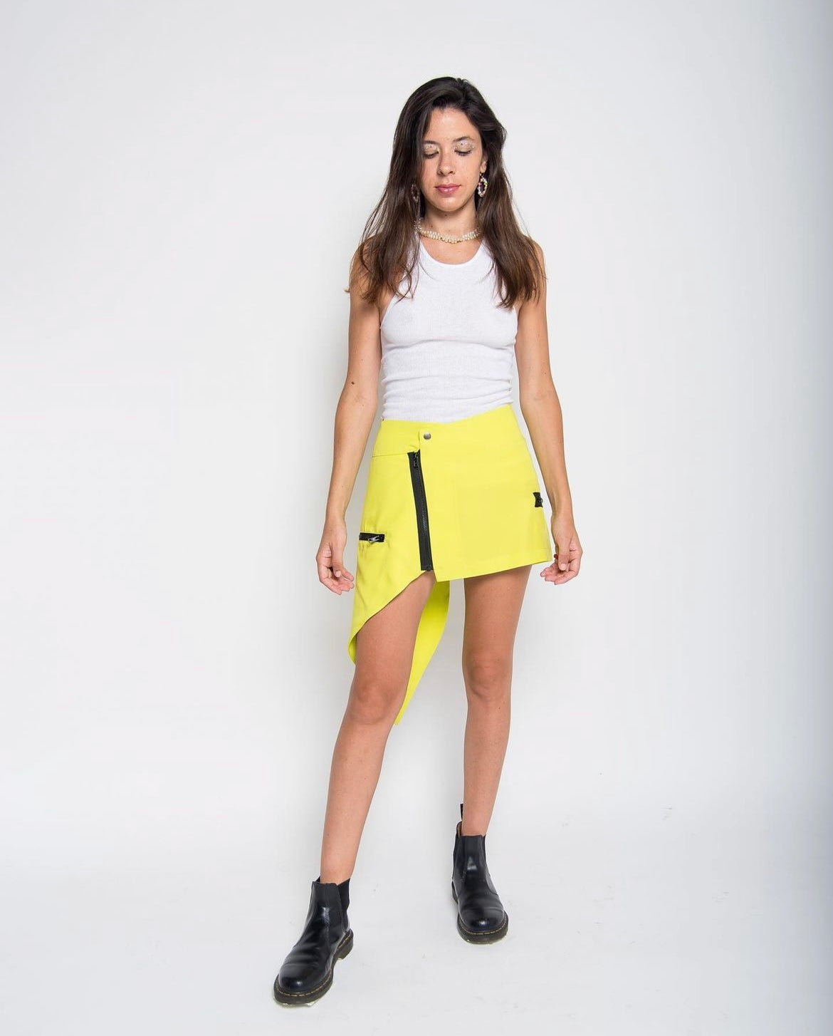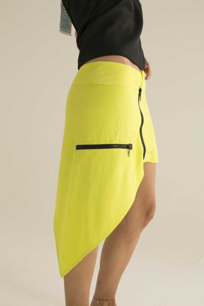 Soft and fresh skirt, has a detail of irregular finishing and zippers.