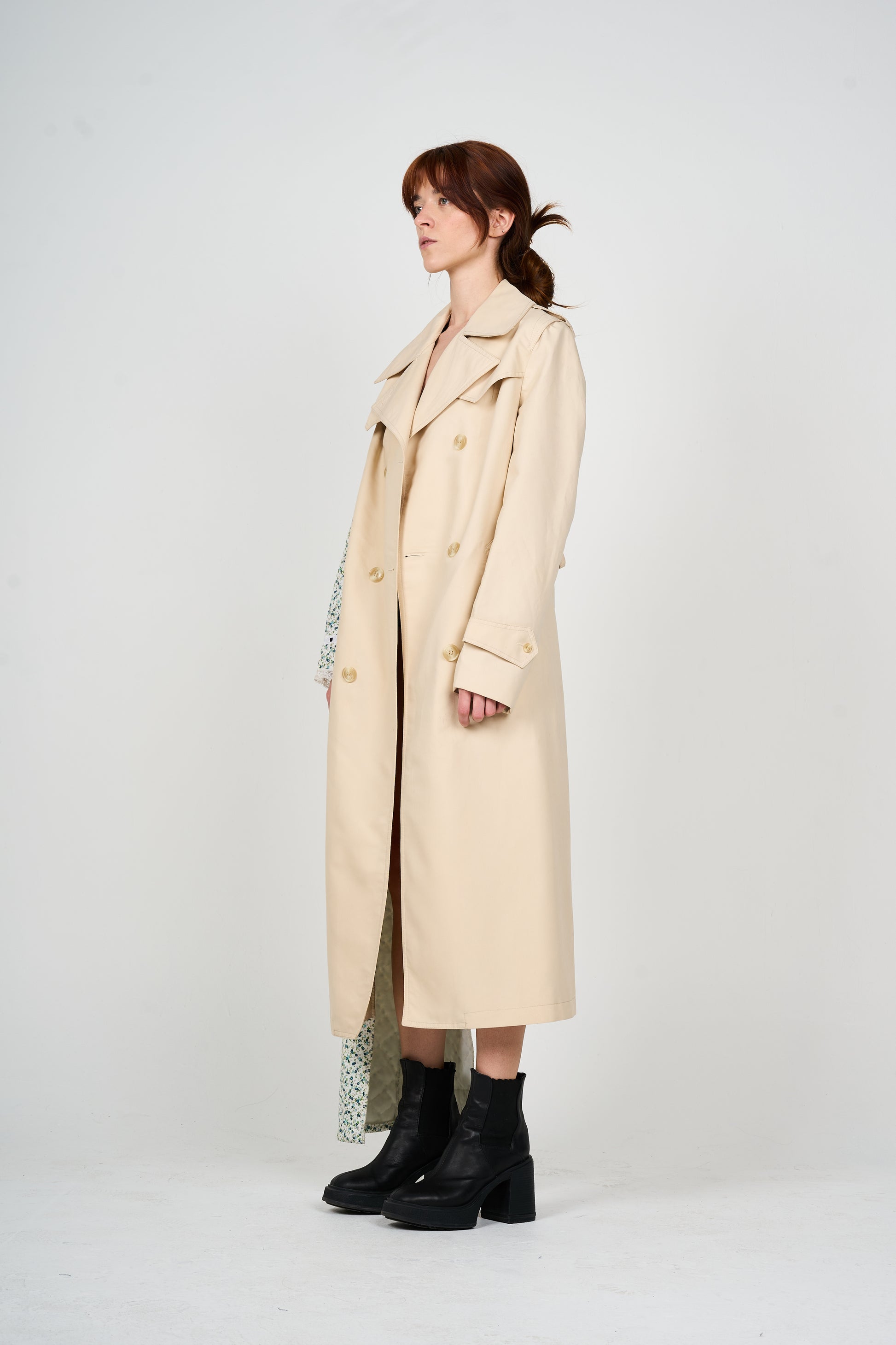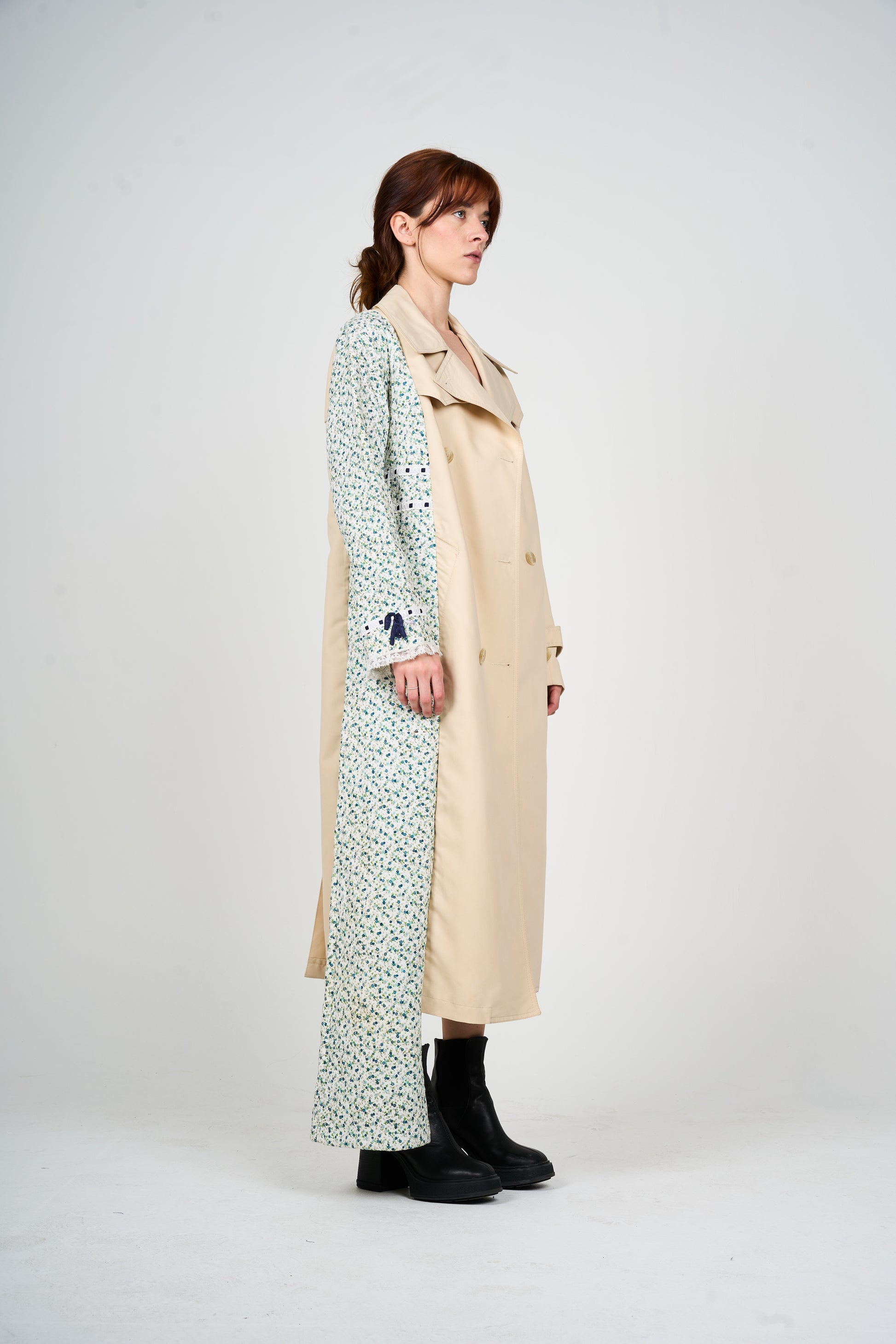 Introducing my favorite piece: Alenkie Upcycled Trench, a unique and sustainable piece of wearable art made from repurposed materials! This upcycled trench is handmade in Argentina, using a combination of one luxury trend and housecoat with prints, carefully crafted to create a special and super cool design.